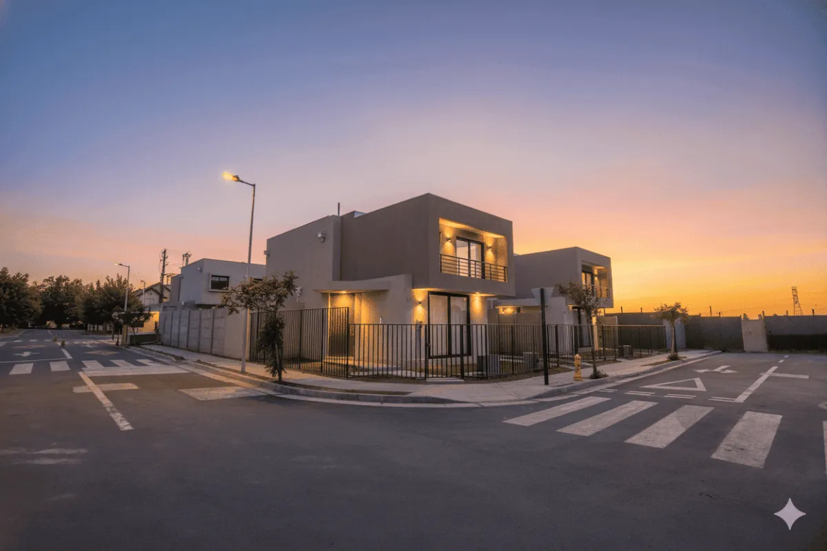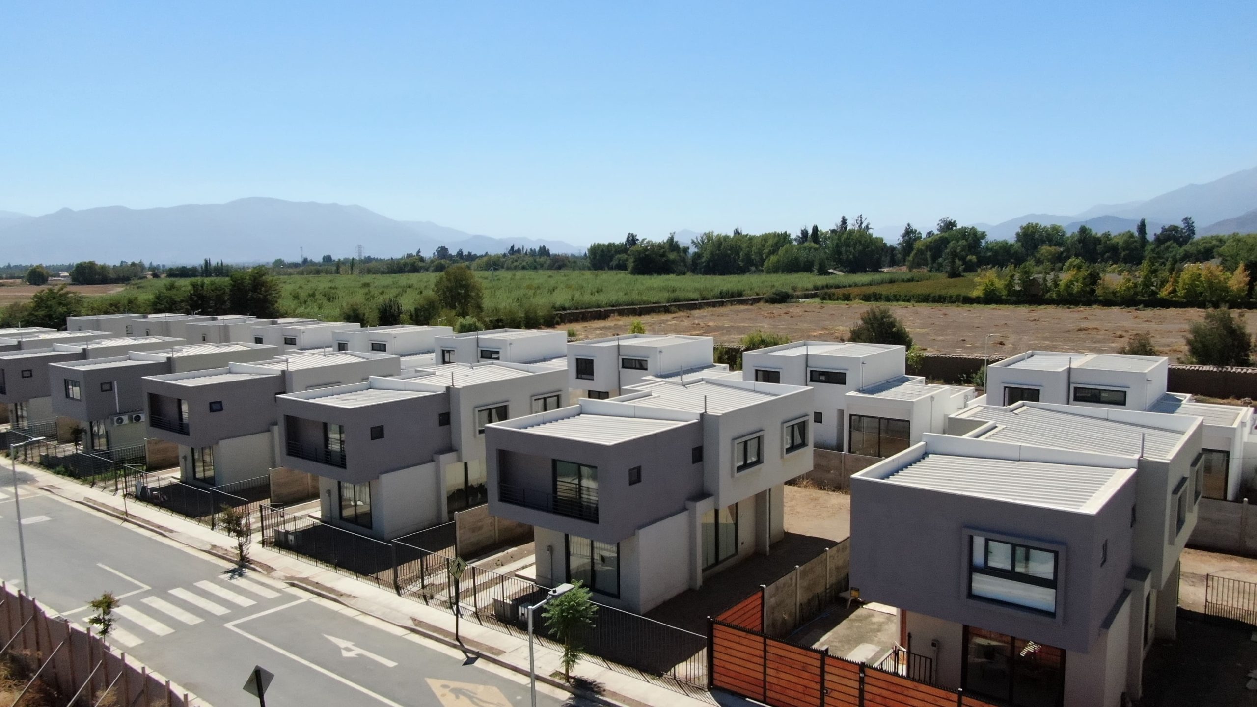 Las casas cuentan con 3 dormitorios y 3 baños, construidas con estructura de hormigón armado en el primer piso y paneles de acero galvanizado Syntheon en el segundo. Destacan su puerta principal de maderas nobles, la escalera de madera natural y los modernos pavimentos cerámicos en todos los recintos.