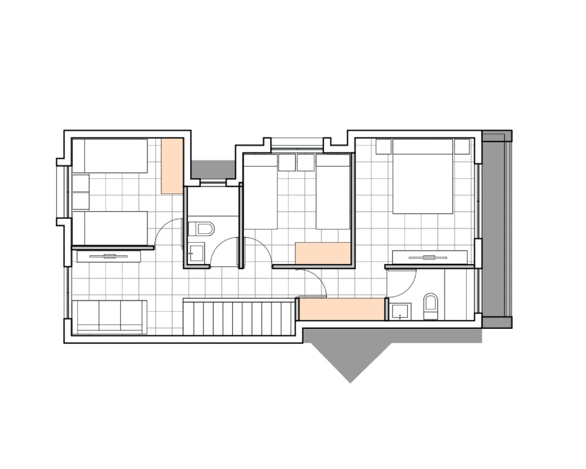 Los modelos A y B incluyen terraza panorámica y sala de estar en el segundo piso. Los baños con shower door, junto a la logia y el estacionamiento propio, completan un estándar de comodidad y calidad en cada vivienda.